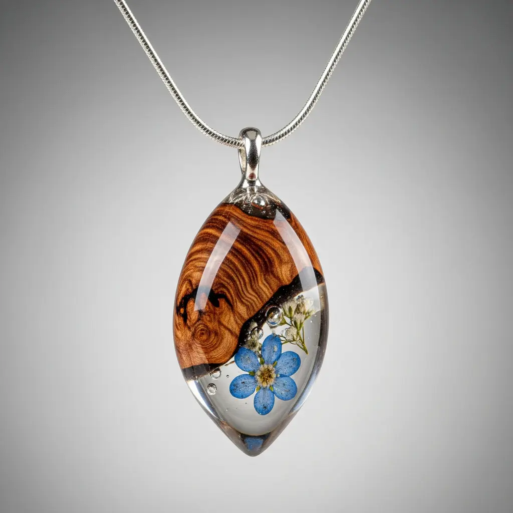 Küçük ahşap parçaları, genellikle reçinenin içine yerleştirilerek benzersiz tasarımlar oluşturulur. Örneğin, ağaç kabuğu parçaları, minik oyuklar veya doğal ahşap damarları epoksi ile doldurulabilir. Renkli pigmentler veya parlak tozlar eklenerek takıya estetik bir derinlik kazandırılır.